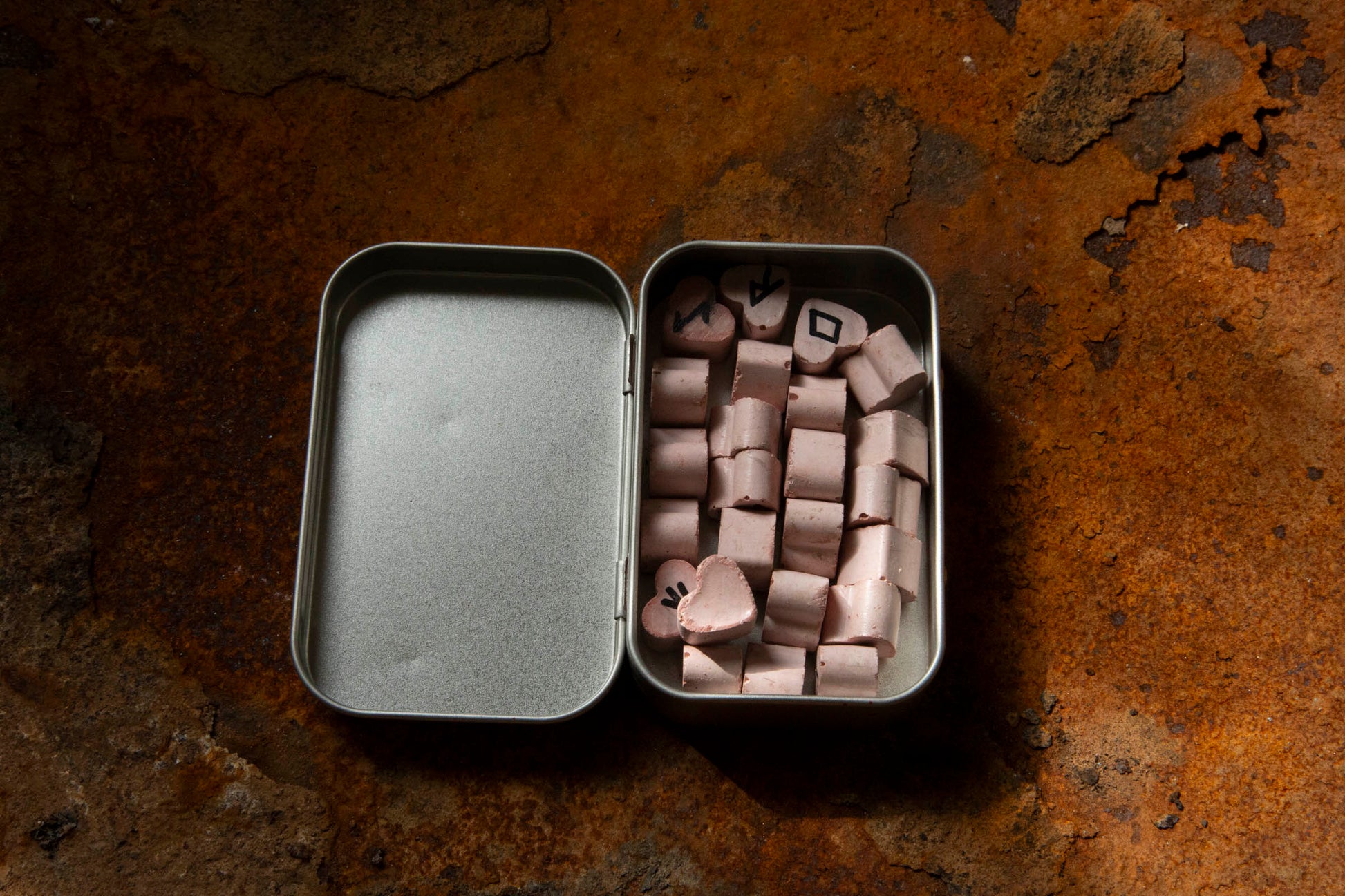 Deze set is de Freya rune set. De kleine hartjes kun je in een hand meenemen. De mini runen hebben de energie van Freya. De zachte en liefdevolle Freya. Ze zitten in een klein blikje.